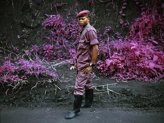 Série de photographies utilisant les infrarouges des détecteurs de camouflage. Les teintes des paysages de champs de bataille d'un Congo en guerre deviennent rose et contrastent avec la dureté du conflit.